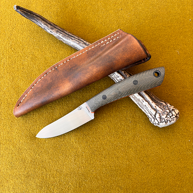 Regular price $495.00Designed for all those hunters out there. A semi-skinner styled knife with a blade that is ideal for field dressing deer sized game. It is equally at home prepping camp meals, carving pot hangers, or as an EDC. The blade has a full flat grind.